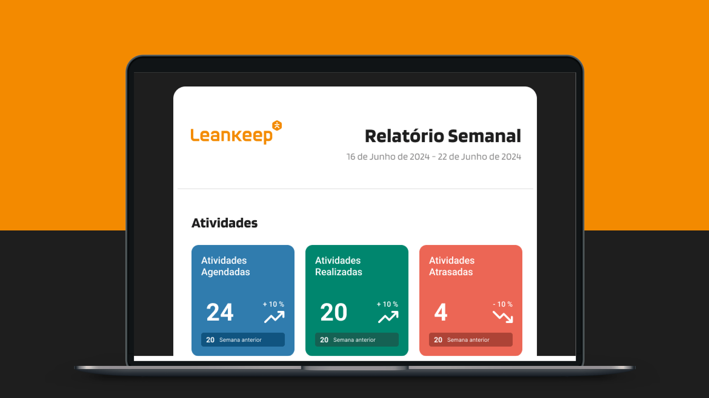 A partir de agora, toda segunda-feira, os administradores da plataforma Leankeep recebem um relatório completo e automático com os principais indicadores da operação.
